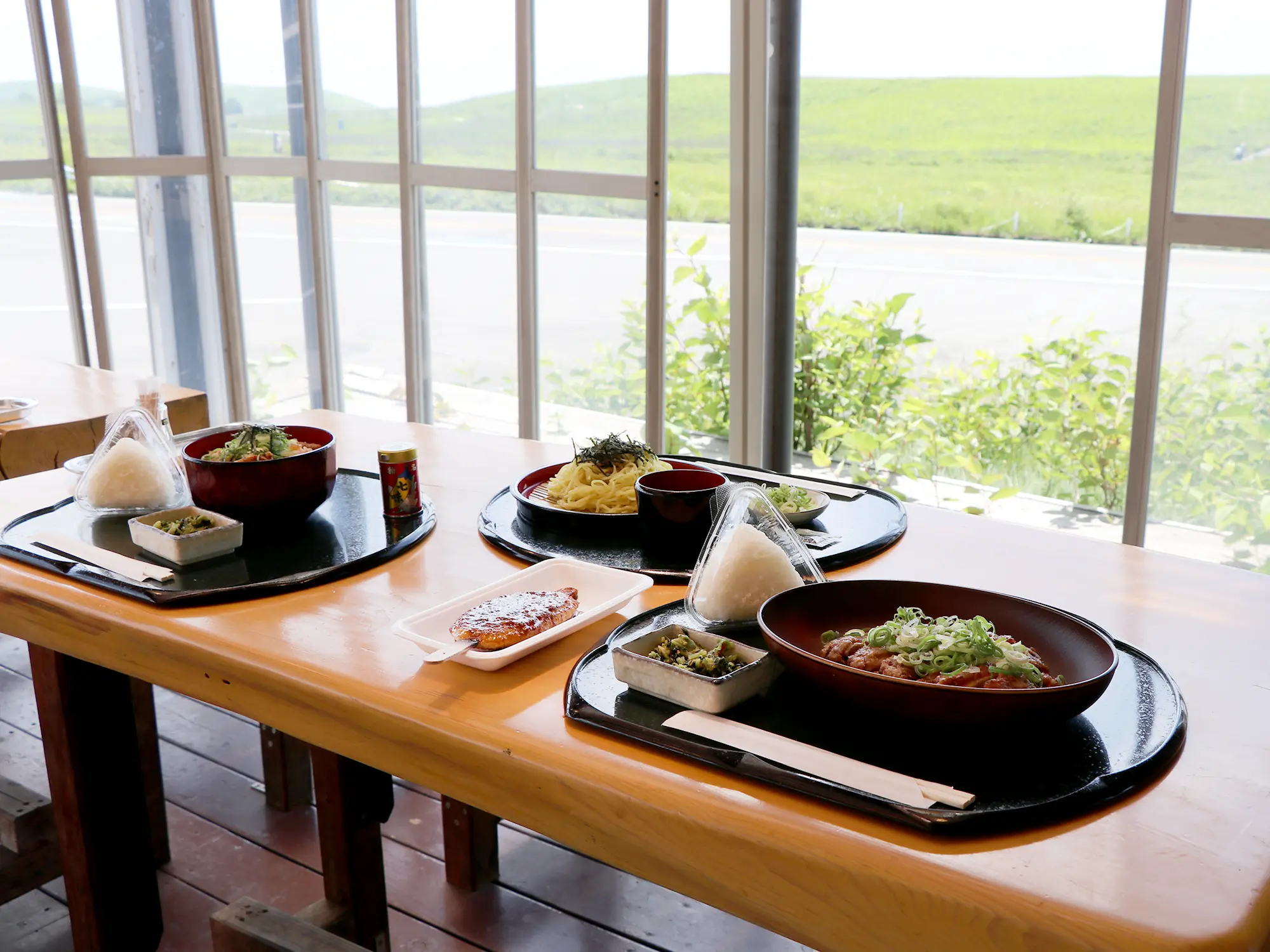 広大なパノラマ風景を楽しみながら、ソフトクリームや軽食で一息つけるお食事処や休憩所があります。