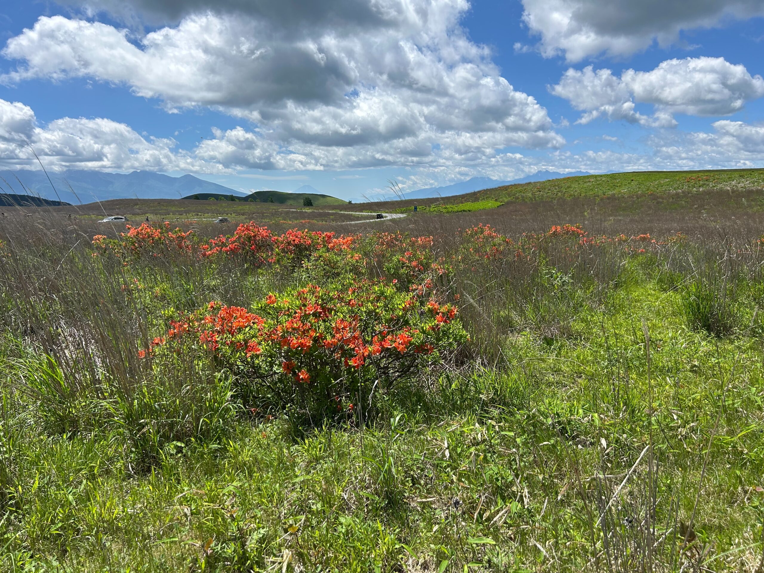 今日は、梅雨明けかと思うくらい気温も上がり、綺麗な青空と白い雲が霧ヶ峰のレンゲツツジを際立たせてくれていました